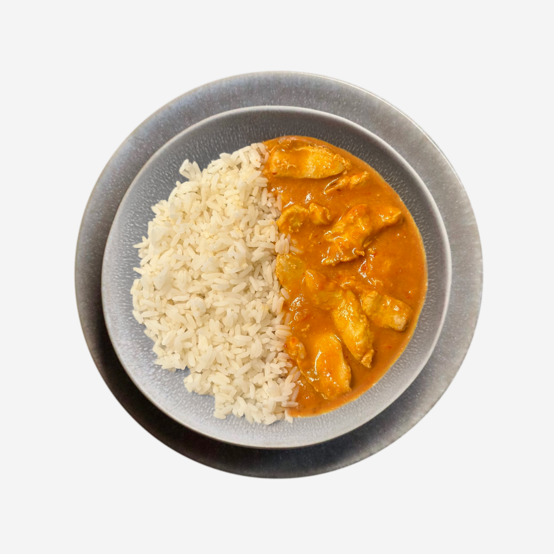 Saftige Hühnerstreifen treffen auf eine fein abgeschmeckte Paprikasauce mit einer dezenten Würze, die das Aroma des Fleisches ideal unterstreicht. Der duftende Reis dient hier als perfekte Beilage und rundet das Gericht geschmacklich ab. Eine herzhafte Mahlzeit, die mit wenigen Zutaten großen Geschmack liefert.